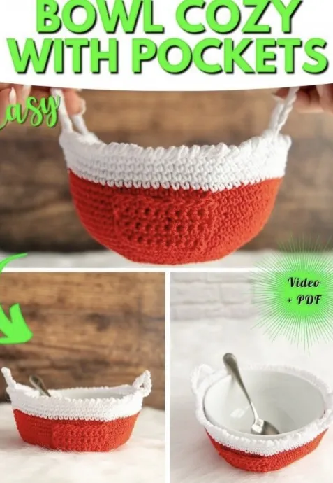 Crochet Bowl Cozy with Pockets
