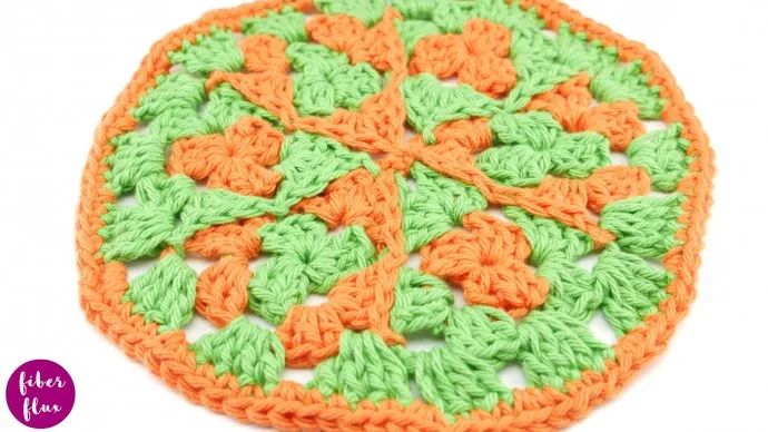As you join the rest of your triangles, you’ll basically be repeating part 2 (see above), except the only difference being that there will be the center area where you’ll be joining into a corner that has two or three triangles (instead of simply joining into another triangle). In this case, make your slip stitch join in the spaces between the triangles (not the corner space). Always go directly across in your join to avoid it being off-center. To see this join in action in greater detail, be sure to check out the video. In the video, I show all possible joining scenarios that may arise as you work on your dishcloth. The rule of thumb is that when you are not joining, you work a ch 1. When you are at a spot that requires a join, simply replace the ch 1 with a slip stitch into the other triangle.