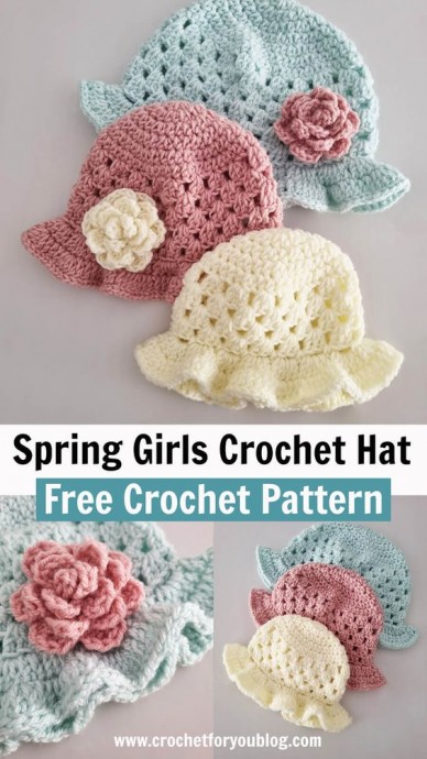 Create a beautiful hat for young girls perfect for the spring season using the art of crocheting. Crafted with delicate yarn and intricate stitches, this handmade accessory is sure to add a touch of charm to any outfit. The hat features a lightweight design, making it comfortable to wear on sunny days while still providing a stylish look. Embrace the creativity and versatility of crocheting by making a unique spring hat for girls. With endless possibilities for colors and patterns, you can customize the hat to suit any personal style. Whether it's for a casual day out or a special occasion, this crocheted hat will be a lovely addition to any little girl's wardrobe.