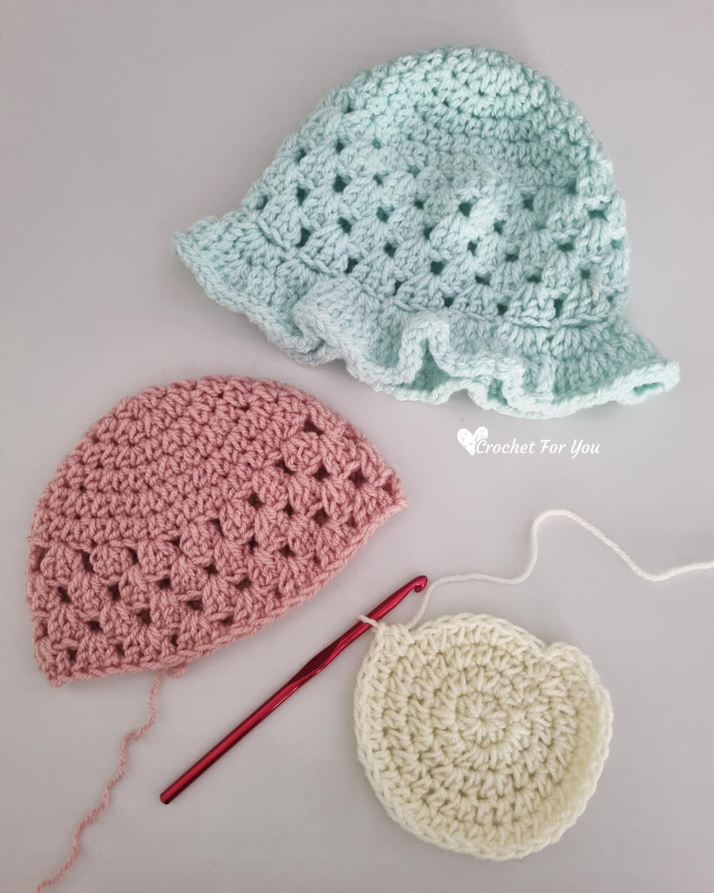 Scroll down to see the flower pattern. Follow the pattern with your favorite color and attach it to the hat.