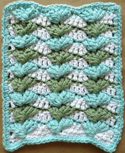 Row 4: With right side facing, pick up dropped White through first sc, ch 3, [dc in next st] across. Drop White.