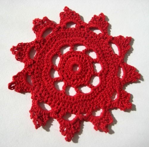 Row 3: sl-st in space between dc, ch3 (counts as dc), (ch1, dc in next ch-1 sp) 15 times, ch1, join w/sl-st to first dc [16 dcs, 16 spaces]