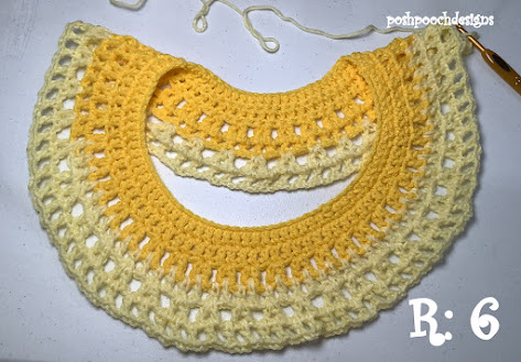 Continue to repeat RND 7 if a longer poncho is desired. RND 23: *2 dc in the ch2 sp, 1 dc in the dc* Repeat from * to * around, join to the ch3 with a slst, tie off weave in your ends.