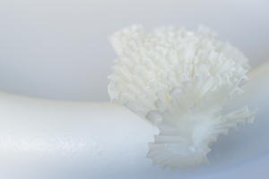 To begin, take one of your liners and grab the bottom and pull up so that it creates a longer, skinnier liner. Place some glue on your wreath form and quickly add the liners. Repeat this as much as you like.