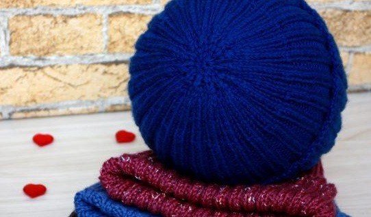 Knit around with 2 x 2 rib in height. 25 cm = 64 rows for adult hat, and 23 cm = 59 rows for child hat.