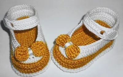 You'll Need: 100% cotton yarn; Knitting needles 2.75; 2 buttons. Stitches Control: 30 sts x 38 rows = 10 x 10 cm. Size: 0-3, 3-6, and 6-9 months, sole length - 8, 9, and 10 cm. Ins...