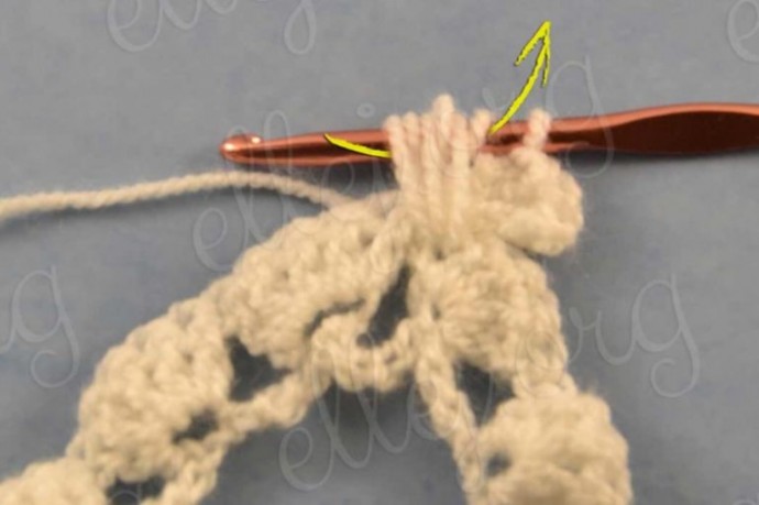 Continue working to the end of the row, slip stitch, 3 chain stitches increase, turn.