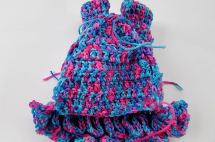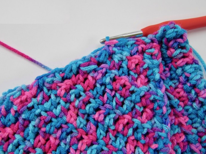 Note: Alternatively, at this point, you can choose not to bind off, but continue by slip stitching up the side and start crocheting the ruffles on row 3 from the bottom.