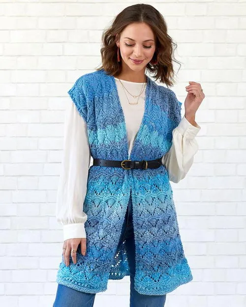 The vest is worked back and forth in rows. A circular needle is used in order to accommodate the full width of the stitches.