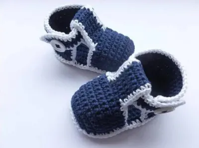 Place toe cap of sandal and sole, work sc in front-half loops (yarn B) all around edge of sole joining parts together.