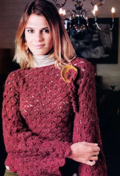 Start your work from the upper part. Make 193 chain sts with crochet hook 4 and divide sts in the following way: 78 sts for each shoulder with sleeve and 37 sts for neck-hole. Work according to scheme 1. At 18 cm height, bind off 64 sts for each sleeve from both sides and continue work with 65 sts of the back straight. At 60 cm height, ensuring that the last row is the 3rd or 5th row of scheme 1, finish your work.
