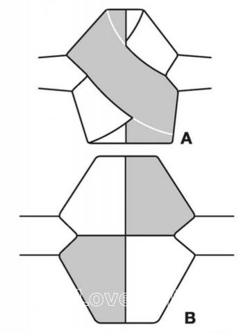 Place the stripe according to scheme A – front and scheme B – back as a double loop, with the anthracite stripe above the grey stripe. Connect the initial and bound off edges with a “stitch in stitch” seam. Sew the upper and lower parts of the back, starting from the middle to 19 (21) cm from each side to the upper and lower sides. Make sleeve seams.