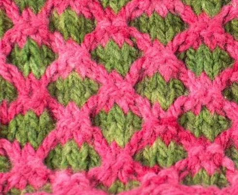 Using color A, K3, *sl 2 wyib, k4; repeat from *, end sl 2, k3;