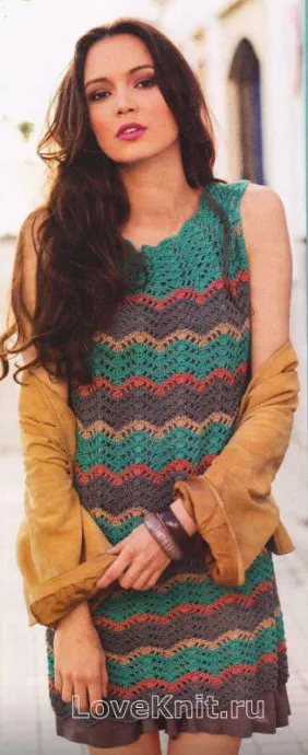 Make 129 (145) chain sts + 3 chain sts increase and work with zigzags pattern = 7 (8) pattern repeats + initial and final sts. For better fitting, decrease 2 x 2 sts tog in WS row after the 1st single crochet and to the last single crochet.