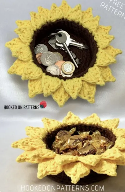 Hello my friends. We are going the organization and orderliness way today again as we make this bright and beautiful Sunflower basket. You get to keep your keepsakes and little items out of the way, making for a clutter-free environment. You can also use this in your office to keep candies, sweets, and many more. Open the free crochet pattern below for the super guide which makes the most of your crochet time.