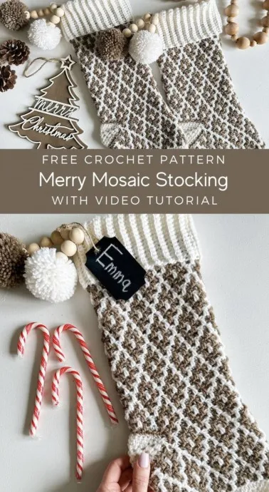 The Mosaic Christmas Crochet Stocking is a perfect design to guarantee satisfaction in your home this Christmas season. The stocking is worked from the toe up, finishing with an easy fold-over band. This free crochet pattern is the perfect crochet pattern to work up in the evening or anytime of the day. This free crochet pattern will be fun to make and use in your home on Christmas. Let’s get started!