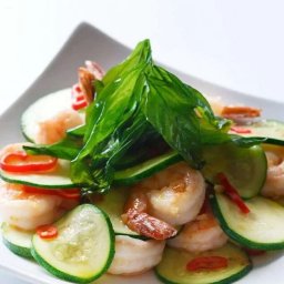 Shrimp and Zucchini Stir Fry with Crispy Basil