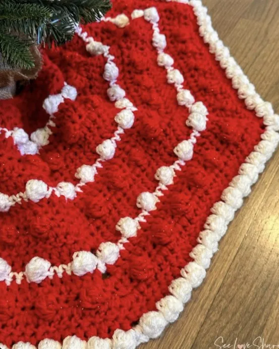 The Crochet Bobble Stitch Christmas Tree Skirt is an exquisite and ornate piece of handcrafted artistry. This meticulously crafted skirt showcases the intricate bobble stitch technique, resulting in a visually captivating design. The use of high-quality materials ensures durability and longevity, making it a timeless addition to your holiday decor. Its versatile size and adjustable closure allow for a perfect fit around any tree, while the rich color palette adds a touch of elegance and sophistication. Elevate your festive ambiance with this opulent tree skirt, a testament to the skill and creativity of the artisan.