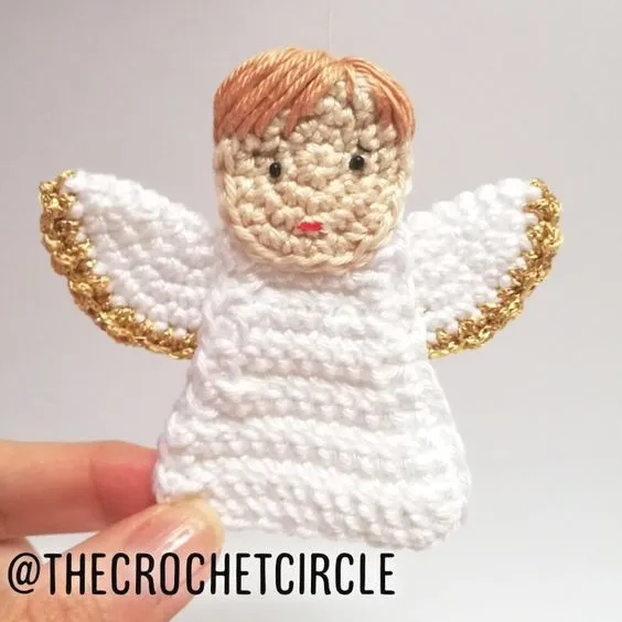 A simple crochet angel ornament made from basic geometric shapes (circle and a cut-off triangle) and using only basic crochet stitches. This is a beginner-friendly crochet Christmas decoration project.