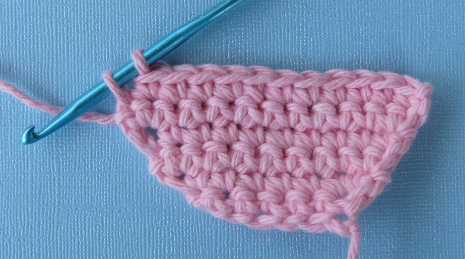 Row 5: 2 sc in first st, sc in next 8 sts, 2 sc in last st, ch 1, turn. (12 sc)