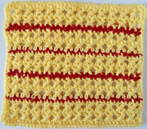 Ch 1, turn, sc in each st across. (38 sc) Change color to Yellow in last stitch.