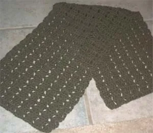 Row 3: repeat Row 2 for as many rows as you want your scarf's length to be. Fasten off.