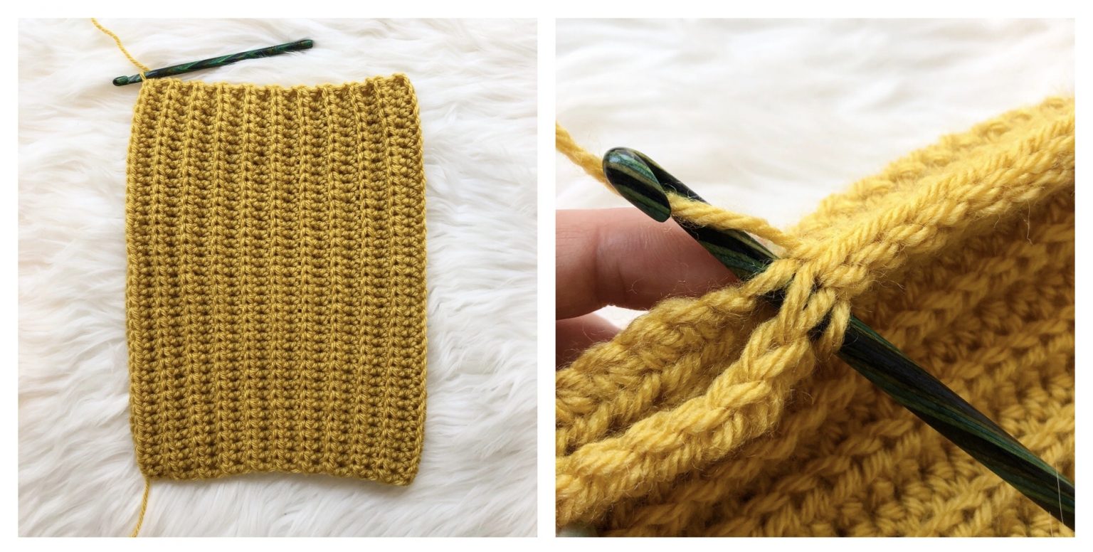Row 2: Ch 1, turn. Hdc in each st across. Crochet in the back loops only until you get to the last st. Hdc through both loops on the last st. (40)