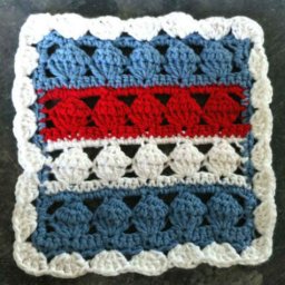 Surface slip knot with red yarn to middle of Row 9.