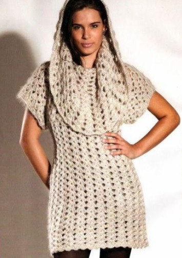 Make the chain sts along the bottom of the front and back according to scheme 2, and make increases based on scheme 2 for 16 cm length in the rows from both sides. At 50 cm length, make shells of 6 double crochets and 1 single crochet along the bottom of the dress.
