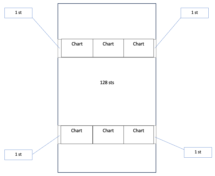 - There are 2 sections that use a rep chart. Before beginning the chart, ch 2, rep the chart 3 times, and hdc 1.