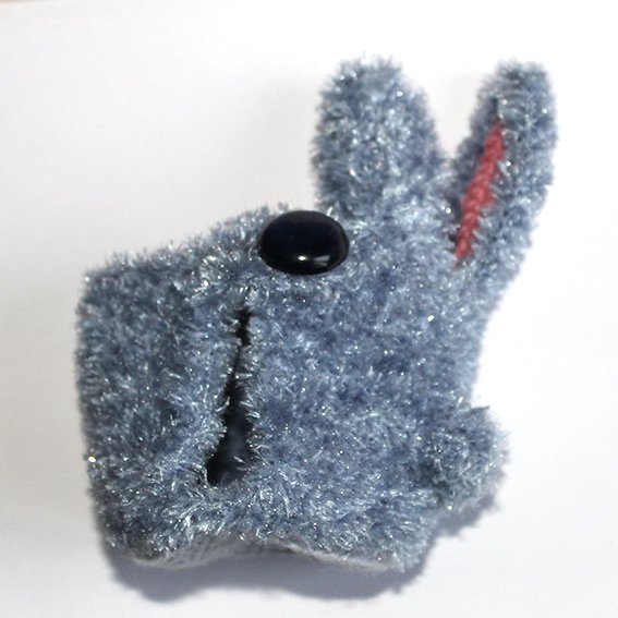 Sew the nose, eyes, and bow onto the left side from the loop. Embroider pupils or sew the beads.