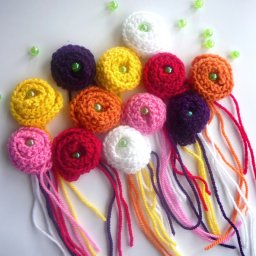 50 (100) 100g of the same yarn, but in light-pink, light-blue, bright-pink, and pink colors (each);