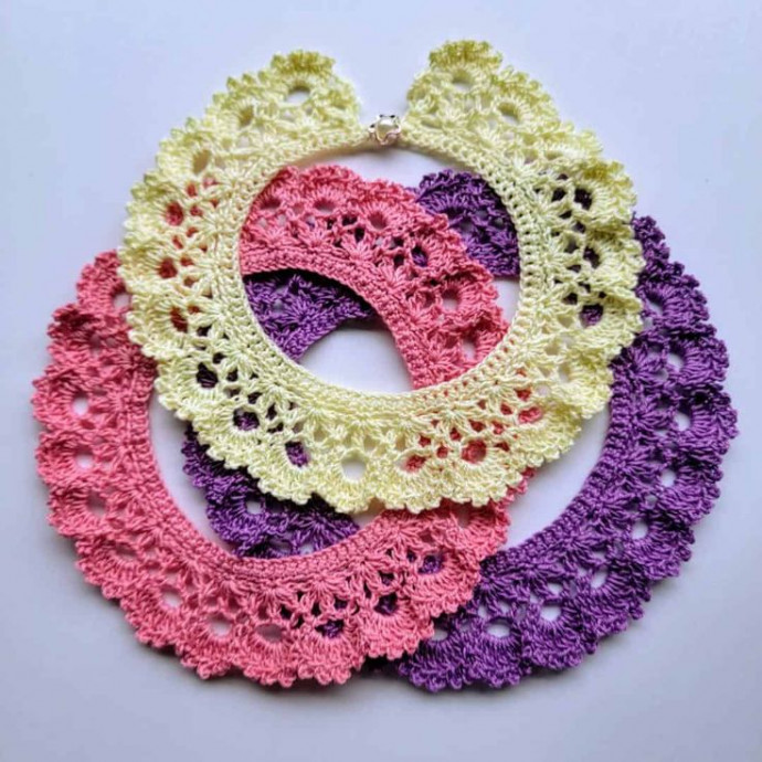 The main pattern is a multiple of 8 + 5 sts. If you would like to shorten or lengthen your necklace, use this multiple of sts then add 10 more chs for the button placement and buttonhole.