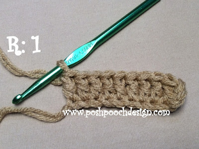 Ch 9, 1 sc in the 2nd ch from the hook, 1 sc in the next 2 chs, 1 dc in the next 3 chs, 1 sc in the next 2 chs, ch 1.