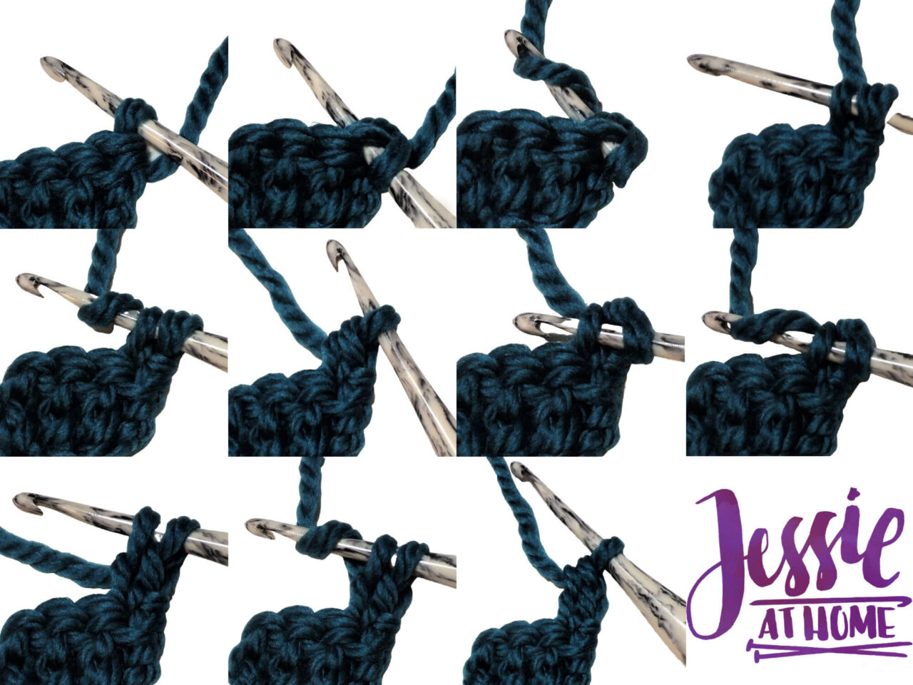 dch2 – doubled chain 2: Used as first dc of a round or row, in place of a ch 3. Insert hook in stitch, yo, pull through (2 loops on hook), yo, pull through both loops, there is now 1 loop on hook, and 2 loops coming off that loop, insert hook in the farthest of these loops, yo, pull through (2 loops on hook), yo, pull through both loops.