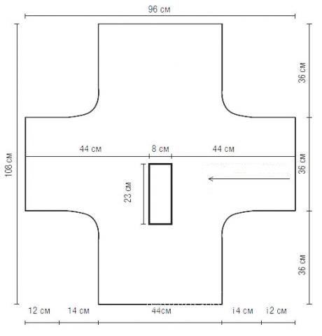 For the front and back, cast on 25 sts from both sides = 108 sts. Then, continue working on all sts according to the patterns order. At 44 cm from the set-up row, work as follows: divide your work in the middle and finish both sides separately. For turning from the left edge of the work, bind off 23 sts, make 8 cm, and cast on 23 sts instead of the bound off sts.